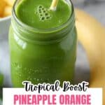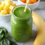 Pour your vibrant green smoothie into a glass, and get ready for an instant mood boost. I usually sip it with a straw and enjoy the way the tropical flavors balance the greens—delicious and nourishing in every gulp.